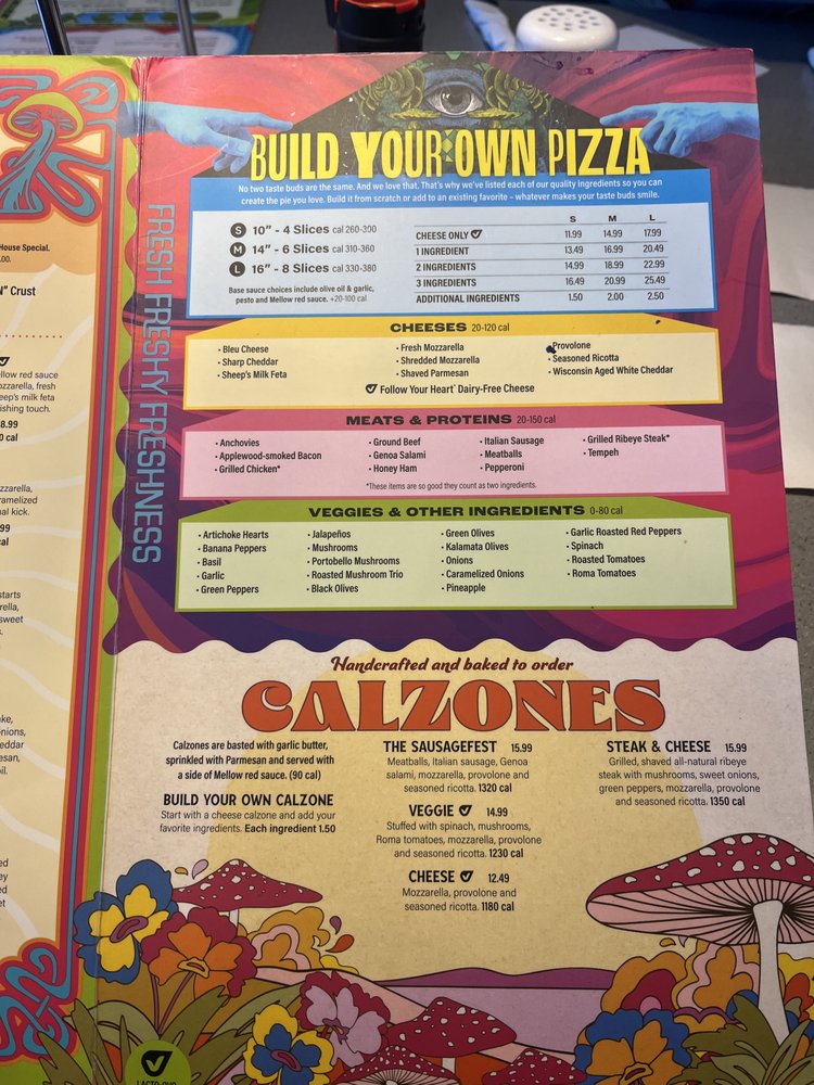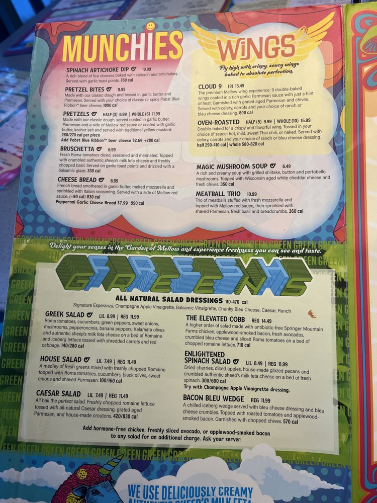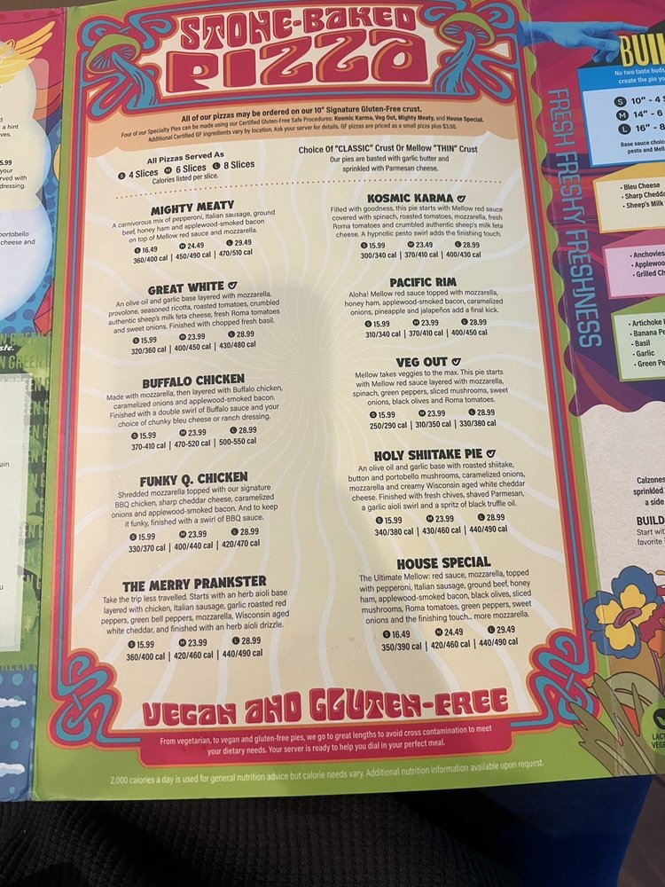 Introducing the menu at Mellow Mushroom Virginia Beach, a hip and trendy spot offering a variety of pizza, sandwiches, and burgers. With vegan and vegetarian options, this ADA-compliant restaurant is perfect for all diners. The menu features delectable munchies like Spinach Artichoke Dip and Pretzel Bites to start your meal. Their wings, such as the Cloud 9 with a garlic Parmesan sauce, are a must-try. The fresh greens menu includes a Greek Salad packed with flavorful ingredients. Customers rave about the delicious pizza and top-notch service. The ambiance is inviting with mushroom murals and outdoor seating. Overall, Mellow Mushroom Virginia Beach is a must-visit for pizza lovers and those seeking a unique dining experience.